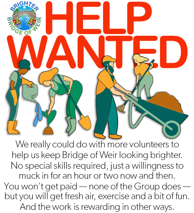And we don't expect you to be a horticultural whizz-kid either! Just to be keen to help make Bridge of Weir brighter for all and not mind getting your hands dirty.